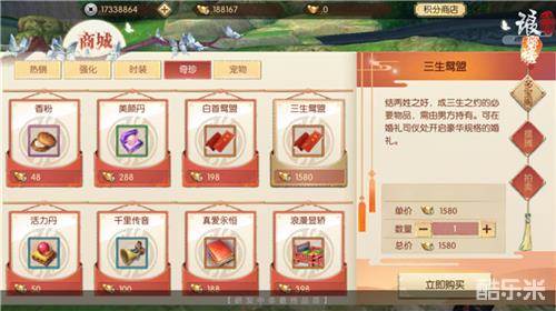 当满足结婚条件之后,准新郎就可以带着准新娘前往结婚场景去找婚礼司仪了,此时队伍中可不能有电灯泡哦。举行婚礼前,可以通过在商城购买白首鸳盟或是三生鸳盟来选择婚礼形式和规模,接下来就是为各位有情人准备的一场别出心裁的婚礼了。