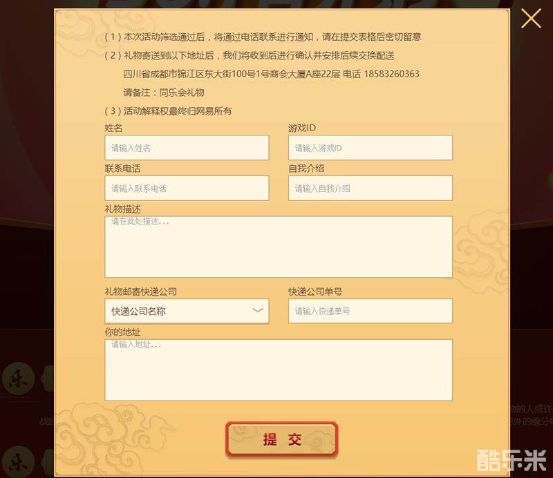2018年1月2日至16日活动期间,为素未谋面的大话好友寄出你的情义礼物,登录大话同乐会专题页面,准确填写你的个人信息与礼物信息,官方收到确认后,即有机会通过礼物交换的方式,收到代表玩家心意的神秘情义礼物,同时收获一段来自大话兄弟的意外缘分!
