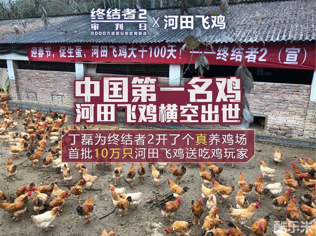 从吃鸡手游,到河田飞鸡,为了吃鸡,“猪场大佬”丁磊真的开起了养鸡场,而丁老板将带给我们怎样的吃鸡福利呢? 据悉,第一批10万只河田飞鸡将限量赠送给《终结者2:审判日 》游戏的玩家们,让大家在玩吃鸡游戏的同时也可以真正享用到现实版美味绝伦的河田飞鸡。