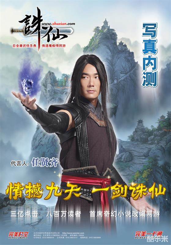 2007年完美世界正式发布《诛仙》端游,邀任贤齐代言并发布主题曲。虽然已经过去十年,海报的设计也略显陈旧,但任贤齐的扮相还是很帅的哦!