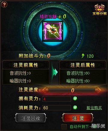 注灵也就是对宝物进行强化,可以进一步的增加宝物的属性。是可以清楚看到增加的属性还有战斗力的哦!