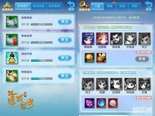 道友请留步分为佛、人、妖、道4大种族,每个种族有十几位神仙,分为红、橙、紫、蓝、绿5中品质,你要拿到非常好用的神仙,比如太乙真人,它是输出能力极强,战斗力非常强大,是玩道族必拿的神仙之一。拿到了强力的神仙,让他们发挥出自己的战力,你战斗力就会非常强大,每个神仙要注意升级、进阶等一些基础值,尽量提高每个神仙的属性值,让他们更加强大。