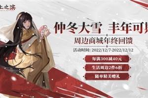 大雪纷纷兆丰年,率土之滨敬祝主公来岁丰顺如意!值此时节,周边商城准备了丰富的福利活动,静候诸公:·单笔订单每满300减40元。·服饰、箱包等生活周边2件6折。·购物即随单赠送精美礼品。【购买方式】【周