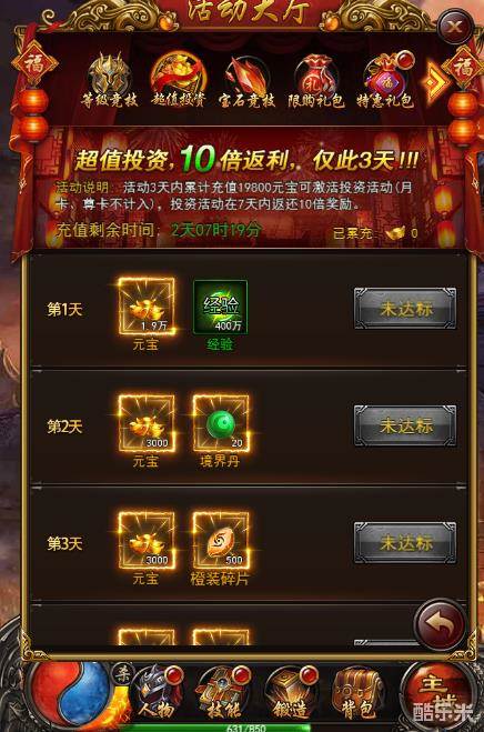 传奇来了正版官方地址:http://www.chuanqilaile.com/活动一:聚宝盆活动时间:2020年7月7日0:00-7月10日23:59活动范围:开服时间小于7天(包含7天)不参与本次活