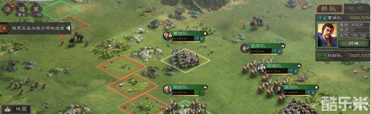 而部队视野即是部队行军停留的地方和战斗过的地方,都会暴露出相邻的2格土地的视野,可以看到附近有没有伏军。