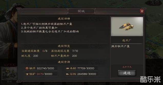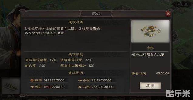 建造要求:7级资源地,6000名声,以后每增加2000名声可以再建一个。