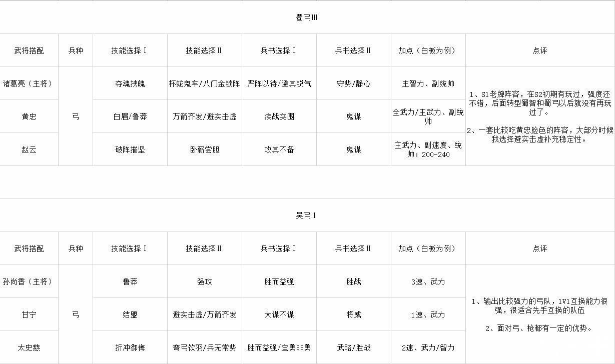 三国志战略版s2配将表: