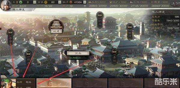 1.在外的武将编队点击回城,在操作界面的下方点击编制部队或在原来的部队上做调整。