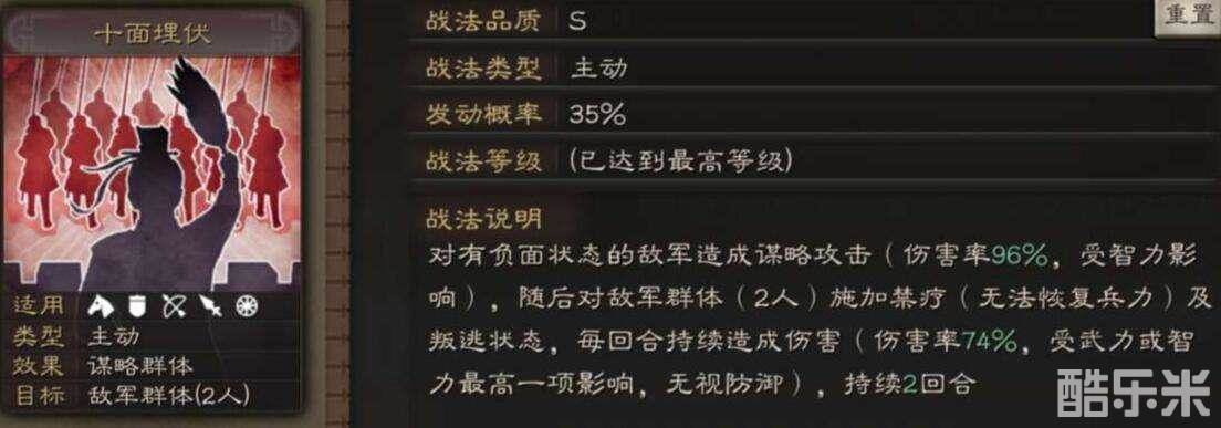1.对有负面状态的敌军造成谋略攻击:瞬发的特性,对面一个拥有负面状态是单体伤害,两个是群体,三个则是全体伤害。由此我们不难看出程昱适合搭配造成负面状态的队友或者战法。