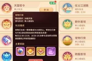 宠物行侠是新热血江湖mmo手游《再见江湖》中的一个重要养成活动,顾名思义,活动产出的都是跟宠物系统有关的强力养成道具,比如各种宠物精魄以及宠物升级资源。下面就给大家介绍一下宠物行侠的具体玩法。宠物行侠活动是一个全天开放日常活动,而且每日的中午12:30-13:30、晚上18:30-19:30参与活动