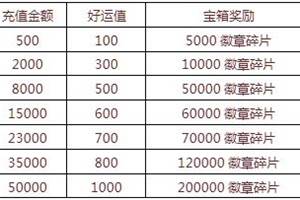 充值兑换【活动时间】2019年9月13日00:00:00-2019年9月14日23:59:59【积分兑换宝箱时间】2019年9月13日00:00:00-2019年9月15日23:59:59【活动内容】