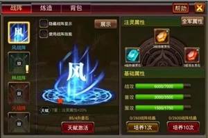 一、新增系统1.战阵系统1.1功能入口*开启条件:已通关55.五虎将*入口位于军机处1.2战阵界面*达到条件解锁战阵可以获得全军属性,通过培养,升星,解锁天赋,镶嵌灵石等操作可以获得更加多的全军属性。