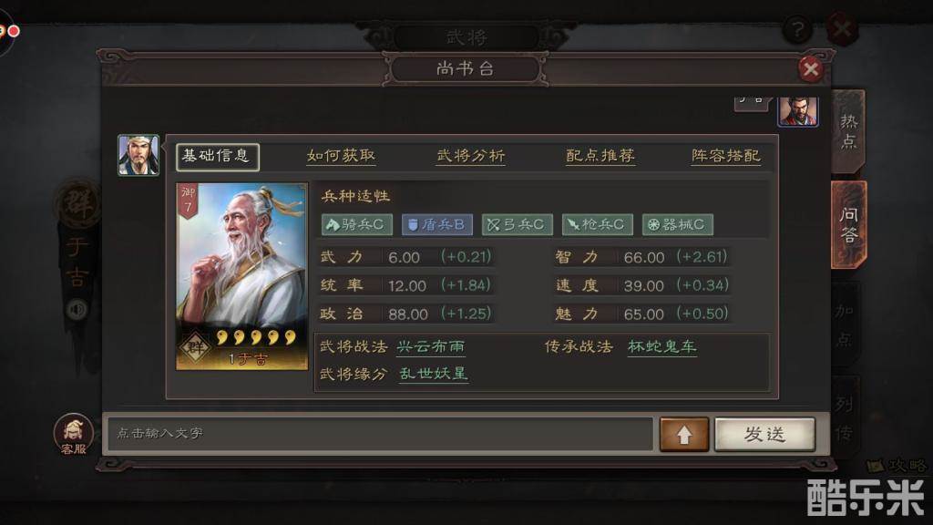 三国志战略版于吉战法与阵容推荐!在三国志战略版中,每个阵营都有其优秀的武将与文臣,而除了三大阵营之外,在乱世中也有着民间群体的能人异士,比如黄老道代表人物的于吉,精通黄老之术,那么接下来就为大家介绍三国志战略版之武将于吉,包括战法学习与阵容搭配。