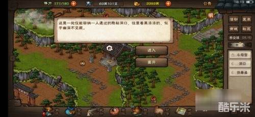 2、此时会发现有个洞口,接着点击【进入】后就能进入到山洞中了。