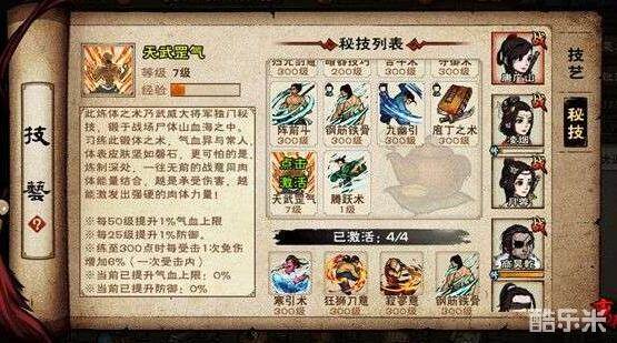 翻阅《天武炼体法》习得天武罡气,读书读到100后需装备秘技后打怪升级