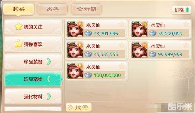 同理,专看多宝阁数量稀缺的冷门召唤兽(例如金不换、水灵仙等),这样你摆价高,其实也会认为是正常。