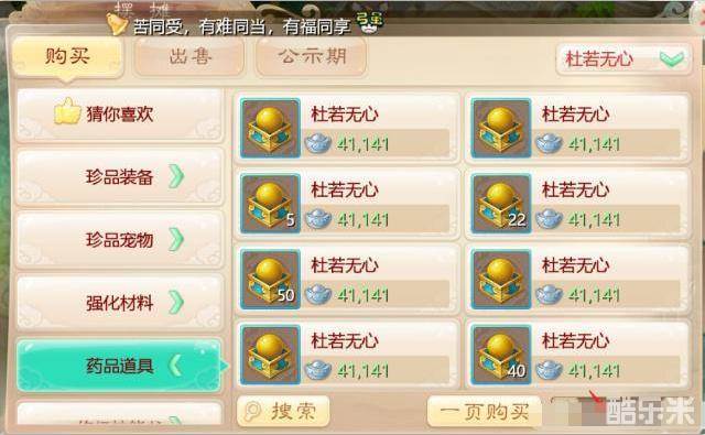 例如杜若无心这种双加药,后期大家都是攒了几百个没地方用了,又很难卖出去。就算卖4万1最低价,也已经在第5页了,其他玩家是不可能买这一页的(都是先买第一页第一个),这个时候小号的作用就出来了。直接买下来,价格肯定不会被扣。
