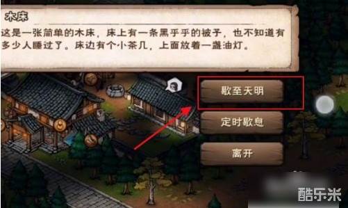 第二步,然后进入“客栈”,选择“歇至天明”。