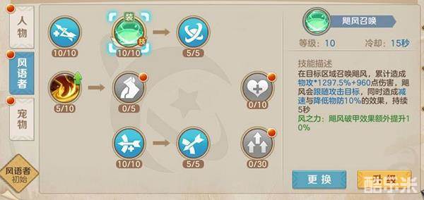 一:以刷图寻宝打幻兽装备副本为主的风语者技能加点。