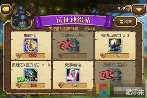 商店会随机刷新出英雄的灵魂石,有的可以用金钱直接购买,高级点的则需要钻石才能购买。