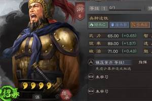 三国志战略版王允这位武将主要定位在内政方向,他的核心价值体现在资源管理方面。下面和酷乐米小编一起来看看吧安排他担任采石官,这样能提高石料屯田的收益,对于前期资源紧张的阶段帮助很大。他的自带战法采石精通效果简单直接,委任后能让石料采集效率提升2%,虽然数值不高但胜在稳定。需这位武将的政治属性有80点,