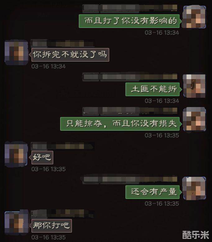 6、勤于沟通。虽然侠客军出现的时间比较久了,但是仍有不少玩家没有遭遇过侠客军,甚至有些玩家会认为你攻打了他的造币厂,他就会失去这个建筑,从而拼命抵抗。实则不然,侠客军除了能拆除S3的军屯外,是不能拆除其他任何资源类建筑的,而且被攻陷的建筑产量也不受影响。多和被攻打的玩家进行沟通,这样兵不血刃便能获得资源。