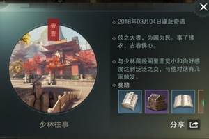 《楚留香》奇遇少林往事怎么触发?下面小编就为玩家带来《楚留香》奇遇少林往事触发方法,一起来看看吧。奇遇少林往事触发方法这种好感泛泛之交的除了新出的原随云,都是坑。。基本上一开始不出就特别特别难了。我这