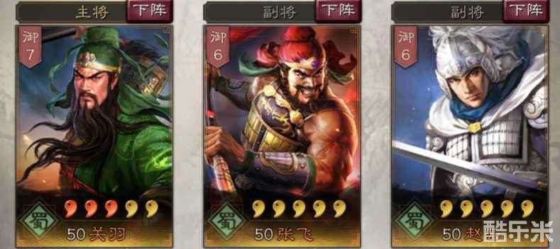 2. 后期组合:关羽+张飞+赵云(统御19)
