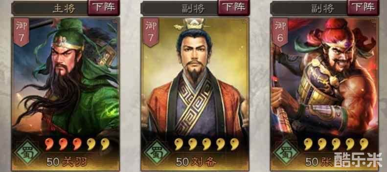 3. 缘分组合:关羽+张飞+刘备(统御20)