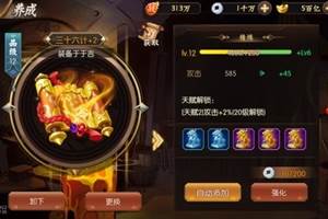 当玩家通过第四章第10关,配饰系统才会开放,每个武将可以携带两件配饰,分别为阵法与将印,阵法可以为装备者增加攻击力,将印可以为装备者增加生命值;配饰可以通过强化与精炼来提高属性加成。【配饰强化】配饰强