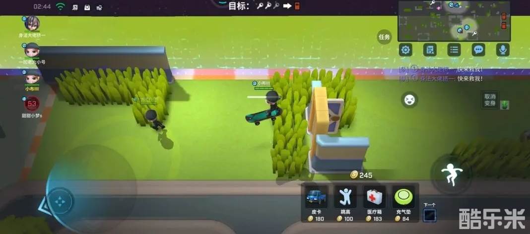 当我们使用滑板之后会大幅度的提高移动速度,和皮卡道具不同的是,滑板只可以承载一个队友,当受到较高伤害之后就会取消滑板的变身效果。并且我们在使用滑板时,还可以搭配道具实现滑板三段跳。