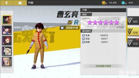 曹玄亮的技能效果可以对目标左右造成额外伤害,相当于一个小型AOE技能,通过升星获得大量基础提升,可以轻松打出高额的AOE伤害。并且曹玄亮升星难度低,即便对于新手,也可以通过推图和各种任务获得R级碎片奖励,再加上推图过程中积累的金币,可以进行初级招聘十连。不但能获得大量R级碎片,还可以获得一张SR级卡牌,运气好些甚至可以抽到SSR杨延昭。所以前期快速拉满曹玄亮和唐流雨的星级,完全可以靠着曹玄亮、唐流雨一拖三进行推图