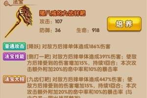 少年西游记中,猪八戒这张卡怎么样?属性强不强?请看小编今天为大家带来的少年西游记人族武将猪八戒属性详解。基础属性(以1级为例)攻击:236防御:53生命:1578资质:120技能:普通攻击:【降妖】对