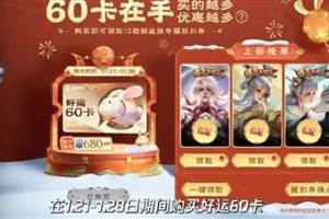 王者荣耀好运60卡有什么用?在王者荣耀中最近出了新春活动外还有其他不错的活动可以让玩家去参加,其中玩家可以购买好运60卡来提升自己的游戏体验,不过很多玩家对于这个卡有什么作用不是很了解。今天小编就来告