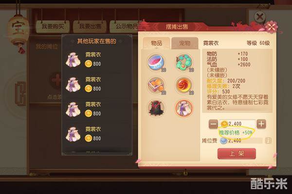 然后大号把这些道具标价4万,全都挂在摆摊中。
